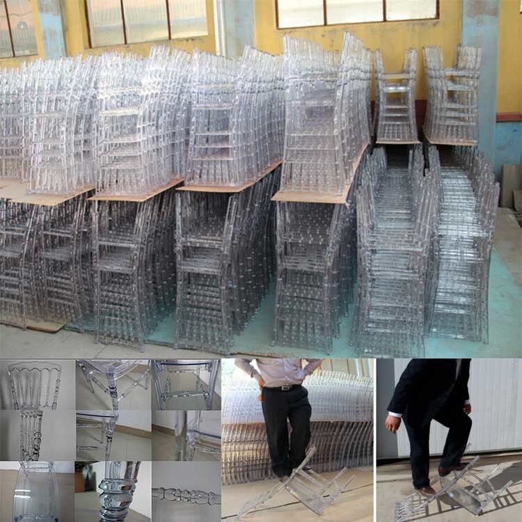 progetta ed è fatto da un'iniezione della unico muffa in chiaro policarbonato. Con il suo durevole, costruzione leggera e la designazione elegante, questa sedia sarà la scelta di sedili principale per tutti i vostri eventi speciali, se all'interno o all'aperto.