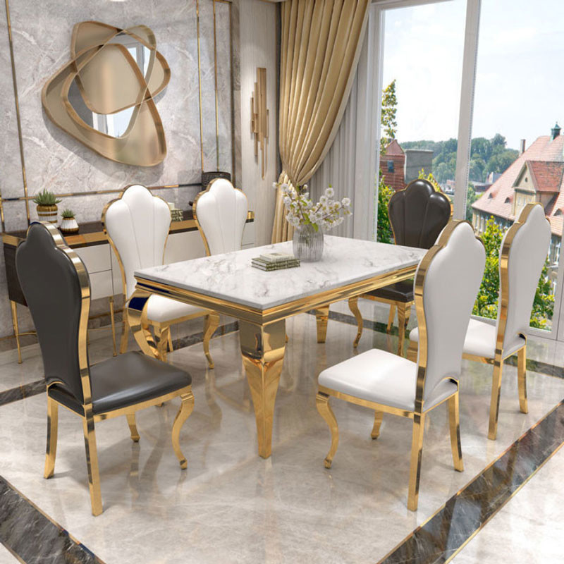 Il tavolo da pranzo di lusso del marmo di rettangolo di acciaio inossidabile ha messo le sedie della sala da pranzo
