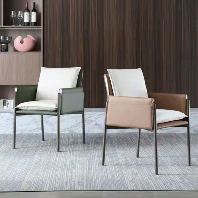Metallo francese di ricezione del bracciolo di cuoio del tessuto dentro pranzare sedia antica