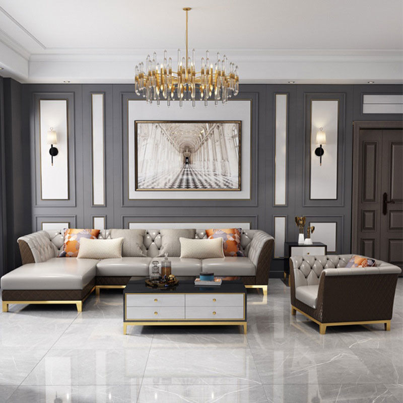 Salone minimalista di lusso Sofa Set European Style sezionale di cuoio