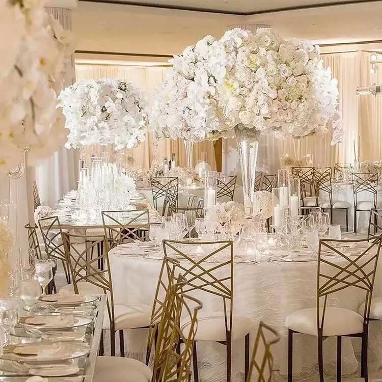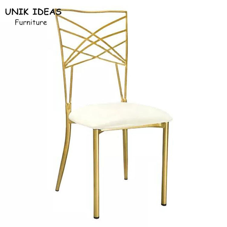 Sedia posteriore di nozze di banchetto del camaleonte dell'oro dell'incrocio di lusso accatastabile del metallo